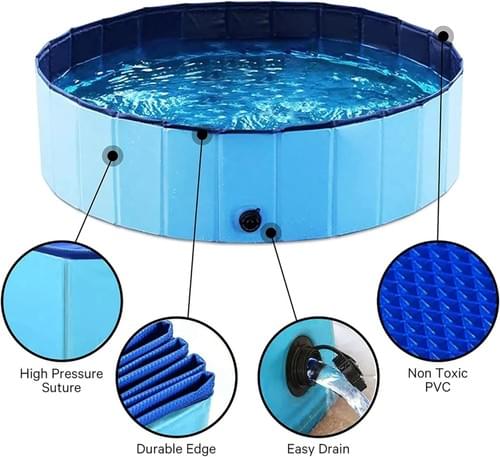 Use your dog swimming pool as a doggy bath. Fill with water then add some shampoo. Make a game with your pupper and end up with a happy and clean doggo. Empty the water through the drainage valve when done.