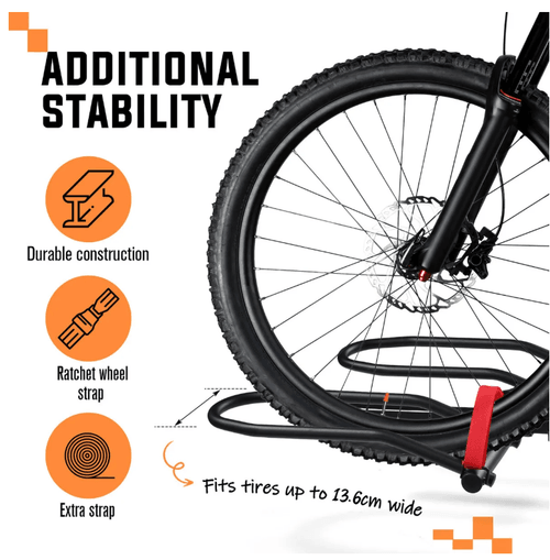 This premium bike rack with a high load capacity is ideal for e-bikes and heavy mountain bikes