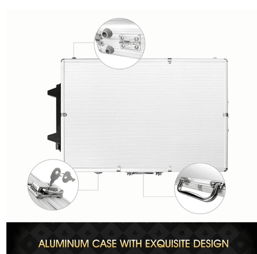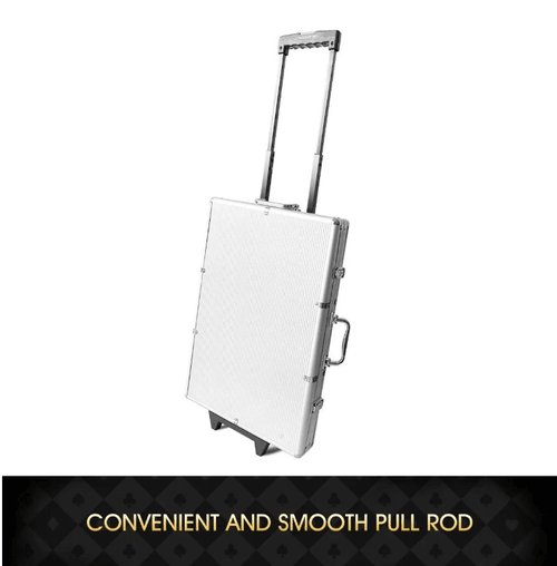 Transport and store your casino chips, dice, and accessories securely with this durable aluminium trolley case. Designed for convenience and protection, it features a strong metal exterior and a soft padded interior to keep your gaming items safe during storage or travel.