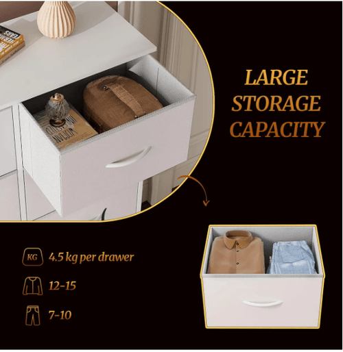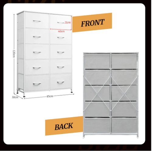 10 Spacious Foldable Drawers: Features 10 large, deep drawers that provide flexible storage for clothes, accessories, linens, and more. Keep your space organised with endless storage possibilities.