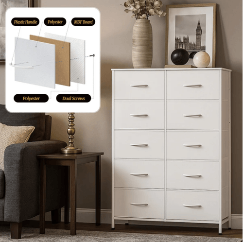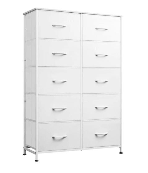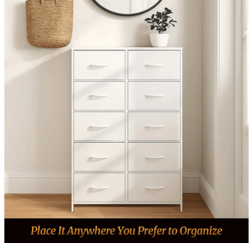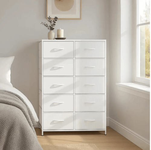 Chest of 10 Drawers Double Dressers Tallboy Fabric Bins White