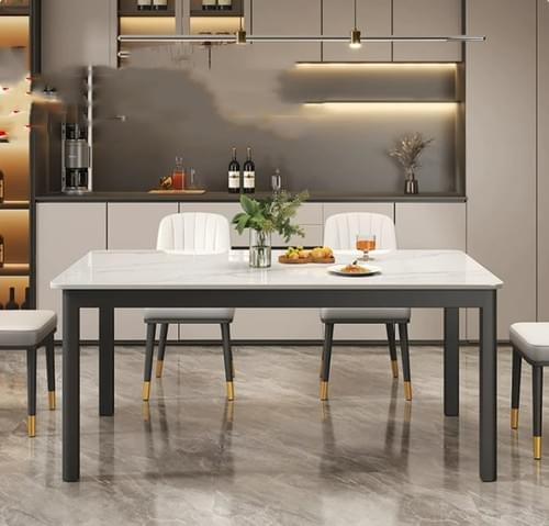 Modern marble-look tabletop: stylish and easy to wipe clean