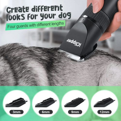 Four guard combs + 5-level shifts: Two adjustable modes are applicable for clipping hair of different lengths. Using this dog shaver clipper, you can trim your pets' hair effortlessly with easy length changes (3/6/9/12mm and 0.8-2mm)