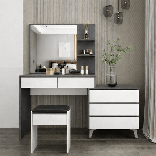 Dressing Table Set Makeup Vanity Mirrored Drawers Storage White Dresser Stool Wooden Furniture