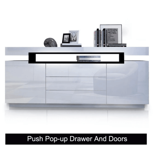 Modern Buffet Sideboard Cabinet High Gloss Storage Cupboard w/2 Doors & 3 Drawers - White