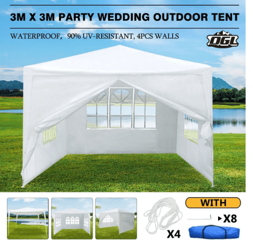 OGL 3M x 3M Party Wedding Outdoor Tent Gazebo Canopy Events Pavilion w/3 Sidewalls and 1 Door