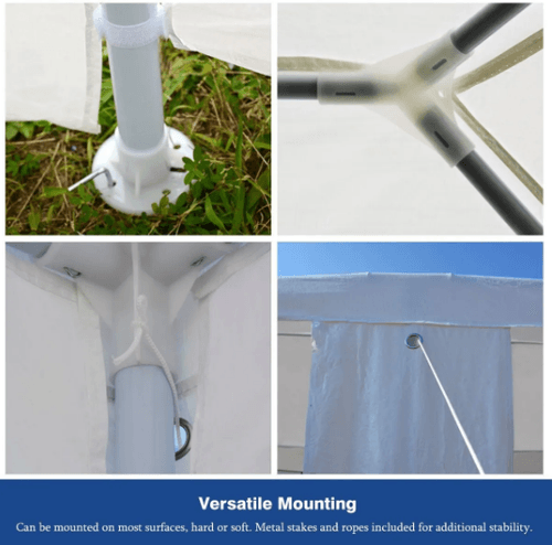 Can be erected on hard surfaces such as decks, driveways, lawn, etc.