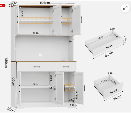 Crafted To Last: Built from the high quality manufactured wood and designed with solid structure, this kitchen cabinet boasts excellent stability and durability for long-term use. Overall size: 38cm D x 105cm W x 180cm H